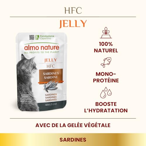 Almo Nature HFC Jelly – Aliments Humides pour Chats Adultes – Sardines – Human-Grade, Gluten-Free, Monoprotéique – 55g Lot de 24