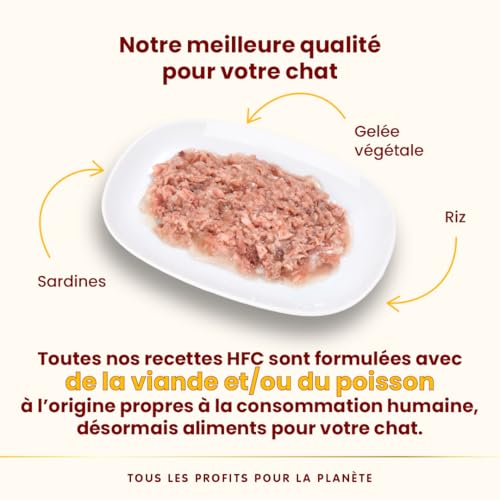Préparé avec des ingrédients HFC, c’est-à-dire à l’origine adaptés à la consommation humaine, maintenant aliment pour chats.