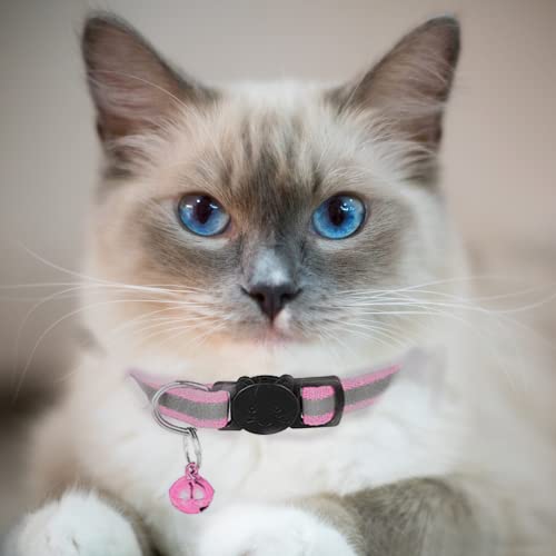 Hepplly Lot de 2 colliers réfléchissants à libération rapide pour chat avec clochette (rose clair)