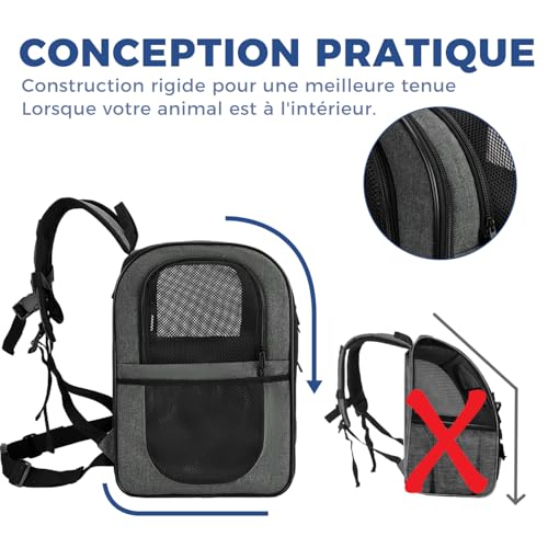 Apollo Walker Sac Transport Chat Chien pour Petits et Grands Chiens et Chats Sac à Dos en Maille Respirante pour Animaux de Compagnie la randonnée – Gris