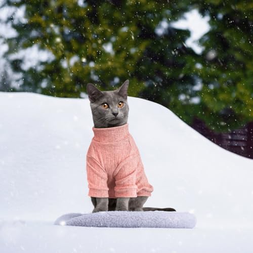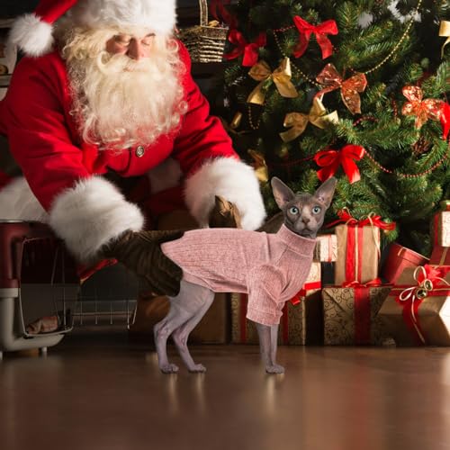 Oslueidy Vêtements pour Chat Sphynx, Pull à Manches Longues pour Chat sans Poils, Veste Costume Pulls Gilet Manteau d’hiver pour Sphynx/Cornish Rex/Devon Rex/Peterbald (Rose, XL)