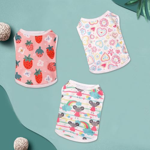 🍓MIGNON VARIÉ : 1 Paquet contient 3 pièces de vêtements pour chiens avec 3 motifs différents, des motifs mignons et des styles variés peuvent rendre votre chien plus charmant et beaucoup plus cool, également de beaux accessoires pour prendre des photos d’animaux de compagnie.