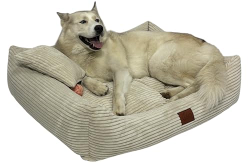 Leo4dog Lit pour Chien en Velours côtelé, Housse Lavable pour Petits, Moyens et Grands Chiens, Coussin pour Chien, canapé, Panier pour Chien (Beige, L 100×80)