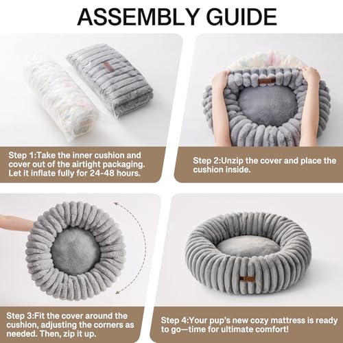 MEWOOFUN Lit moelleux et apaisant en forme de donut pour chien et chat – Anti-anxiété – Avec fond antidérapant – Lavable – Avec housse amovible – Lit d’intérieur – Gris – Taille L