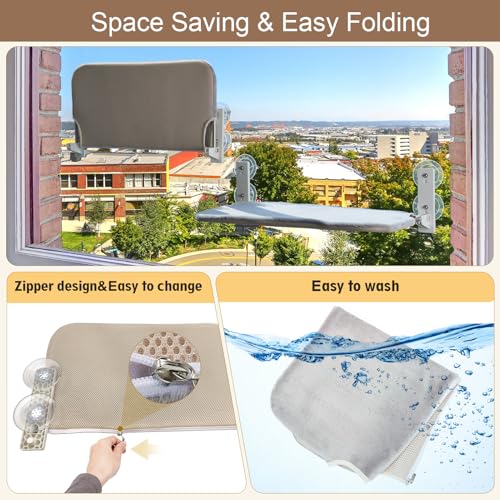 PEFUNY Perchoir de Fenêtre pour Chat Pliable sans Fil, Hamac pour Chat avec 4 Ventouses, Cadre Setal Robuste pour Fenêtres en Verre et Murs Intérieurs (Gris Moyen)